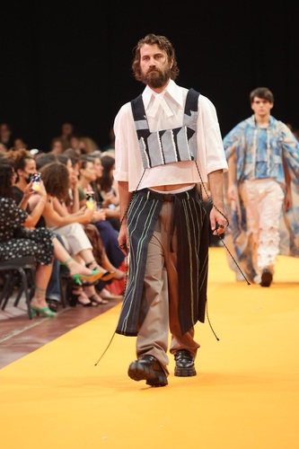 The collections in this group challenge familiar identities and widen the definitions of the body and sexuality through the use of the body as an artistic medium via emphasis, accentuation, and the empowerment of personal freedom of expression in design and fashion. In some cases, it is a self-portrait that deals with the boundaries of gender and examines the differences in bodies and figures by using unique materials along with iconic items, which create a personal, specific appearance.